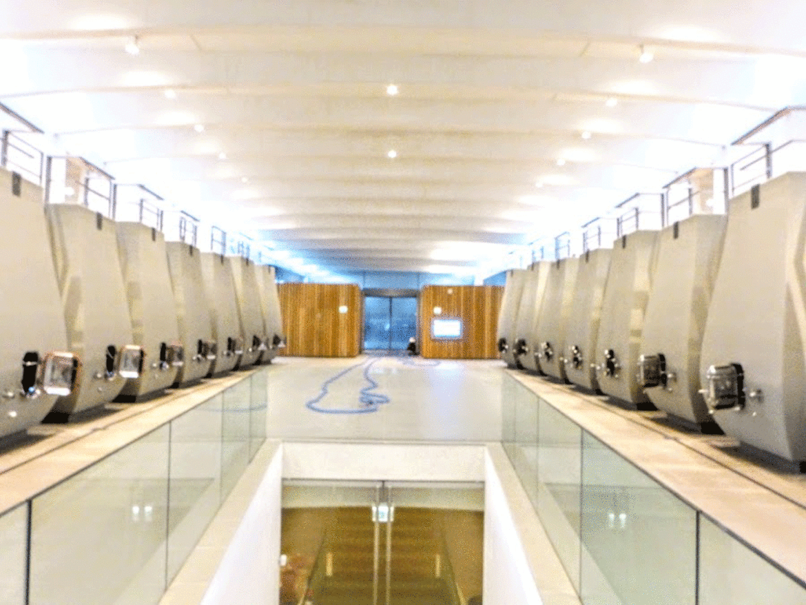 L’attuale cantina di Château Cheval Blanc vede la luce nel 2011. La disegna Christian de Portzamparc, uno che vinto il premio Pritzker; l’equivalente del nobel degli architetti. Come è? Bella, flessuosa, discreta, perché cerca volutamente il rispetto del luogo, anche visivamente. All’interno 52 serbatoi in cemento con capacità che vanno da 20 a 110 ettolitri. La durezza del cemento, qui utilizzato per la vinificazione sin dal 1966, si mescola alla flessuosità curvy della forma dei serbatoi, fatti così scelti per questioni di gestione del cappello in fase di fermentazione. Il resto della ricetta è semplice. No macerazione a freddo, lievito selezionato dal proprio vigneto, partenza di fermentazione molto slow, specie in fatto di temperature così mantenere sapori e tannino sotto controllo. Non aggiungono vin de presse, solitamente molto tannico, perché potrebbe rovinare l’equilibrio specie dal punto di vista degli aromi. Poi l’affinamento. Solo legno francese, proviene da 6 differenti tonnellerie, solo nuovo, per un massimo 16/18 mesi.
